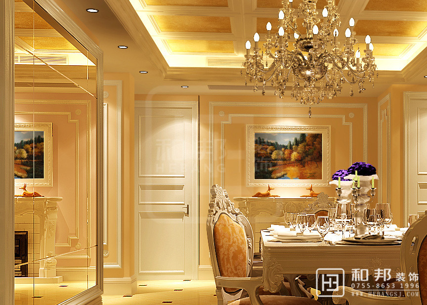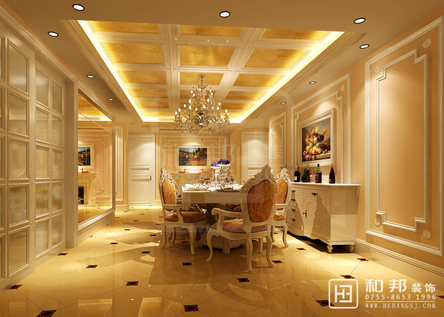 利用簡歐的精致簡潔,再加上整體的淡黃色基調,配合燈光家具,打造一個舒適典雅的家居環境。