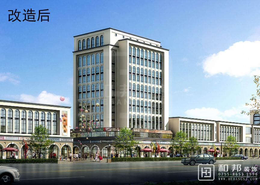 本設計把整棟樓以及周圍的房子的外觀統一,以及保留了之前的綠化。